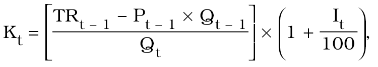 | PRt - 1 = maximálna cena za dodávku elektriny pre kategóriu domácnosť v Sk na jednotku elektriny v roku t - 1. |
