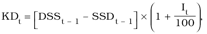 | KDt = korekčný faktor v Sk v roku t, ktorý sa vypočíta podľa vzorca: |