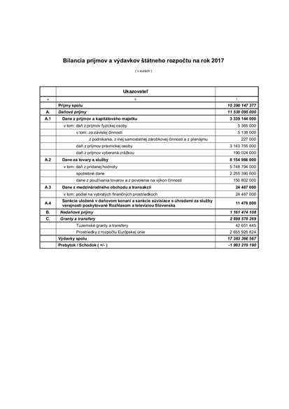 | Bilancia príjmov a výdavkov štátneho rozpočtu na rok 2017 |