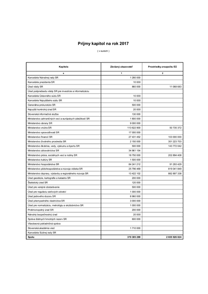 | Príjmy kapitol na rok 2017 |
