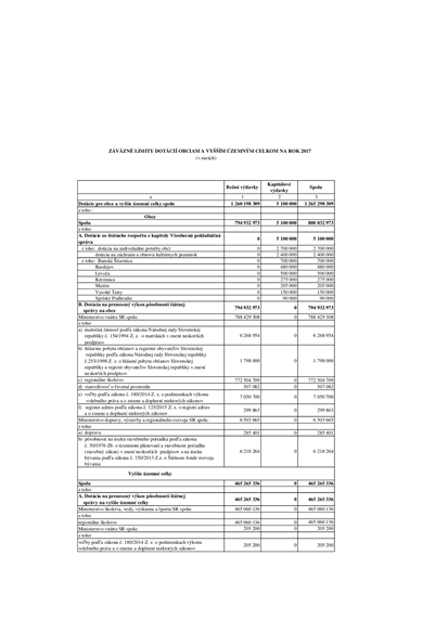 | ZÁVÄZNÉ LIMITY DOTÁCIÍ OBCIAM A VYŠŠÍM ÚZEMNÝM CELKOM NA ROK 2017 (v eurách) |