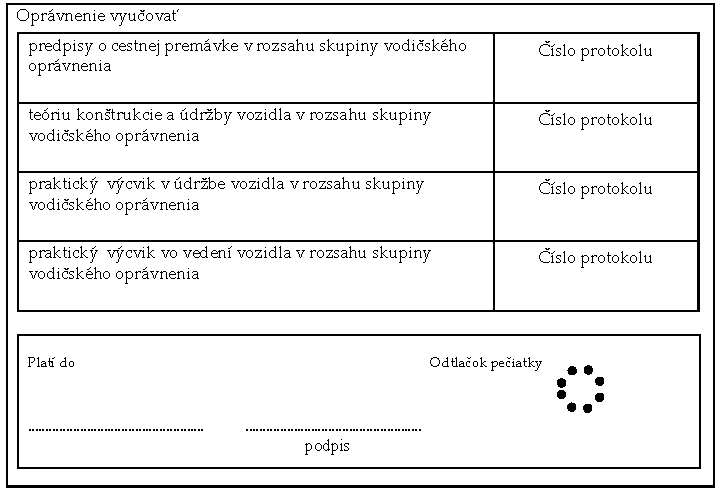 | Vzor inštruktorského preukazu |