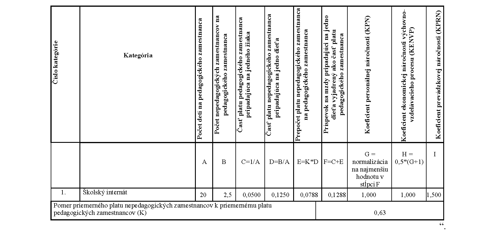 | (3) Pre školské internáty sú hodnoty koeficientu personálnej, ekonomickej a prevádzkovej náročnosti uvedené v prílohe č. 5a. |